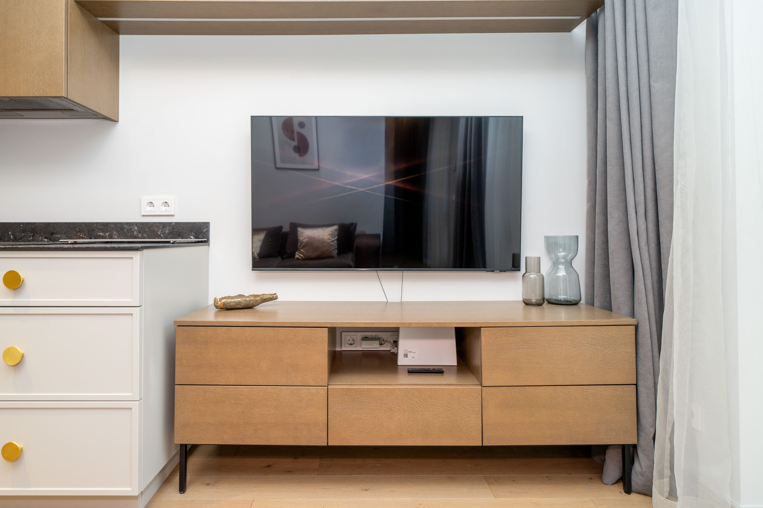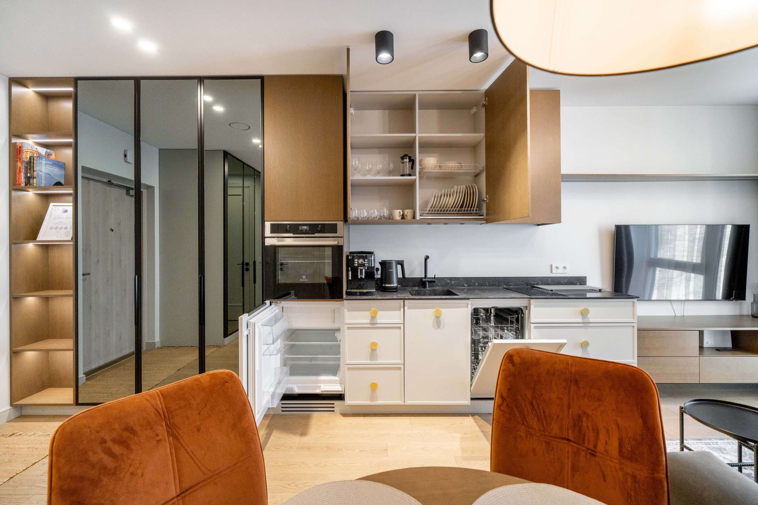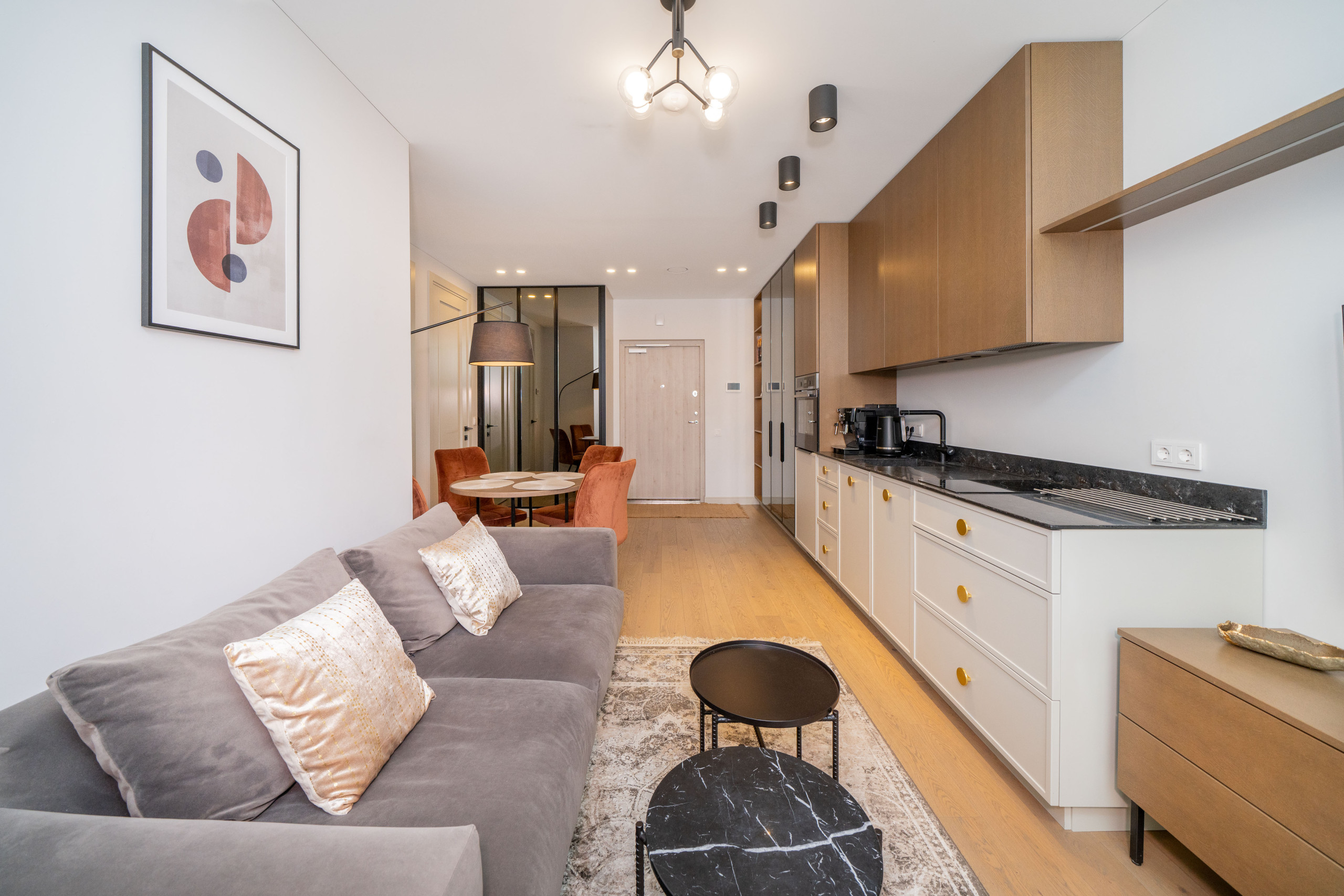O apartamento em Vilnius tem 1 quarto(s) e capacidade para 2 pessoa(s). Alojamento de 36 m². Dispõe de elevador, máquina de lavar roupa, máquina de secar roupa, ferro de engomar, acesso internet (wifi), secador de cabelo, aquecimento central, Televisão. A cozinha, de inducção, está equipada com frigorífico, forno, congelador, máquina de lavar louça, louça/talheres, utensílios/cozinha, máquina de café e jarro eléctrico.