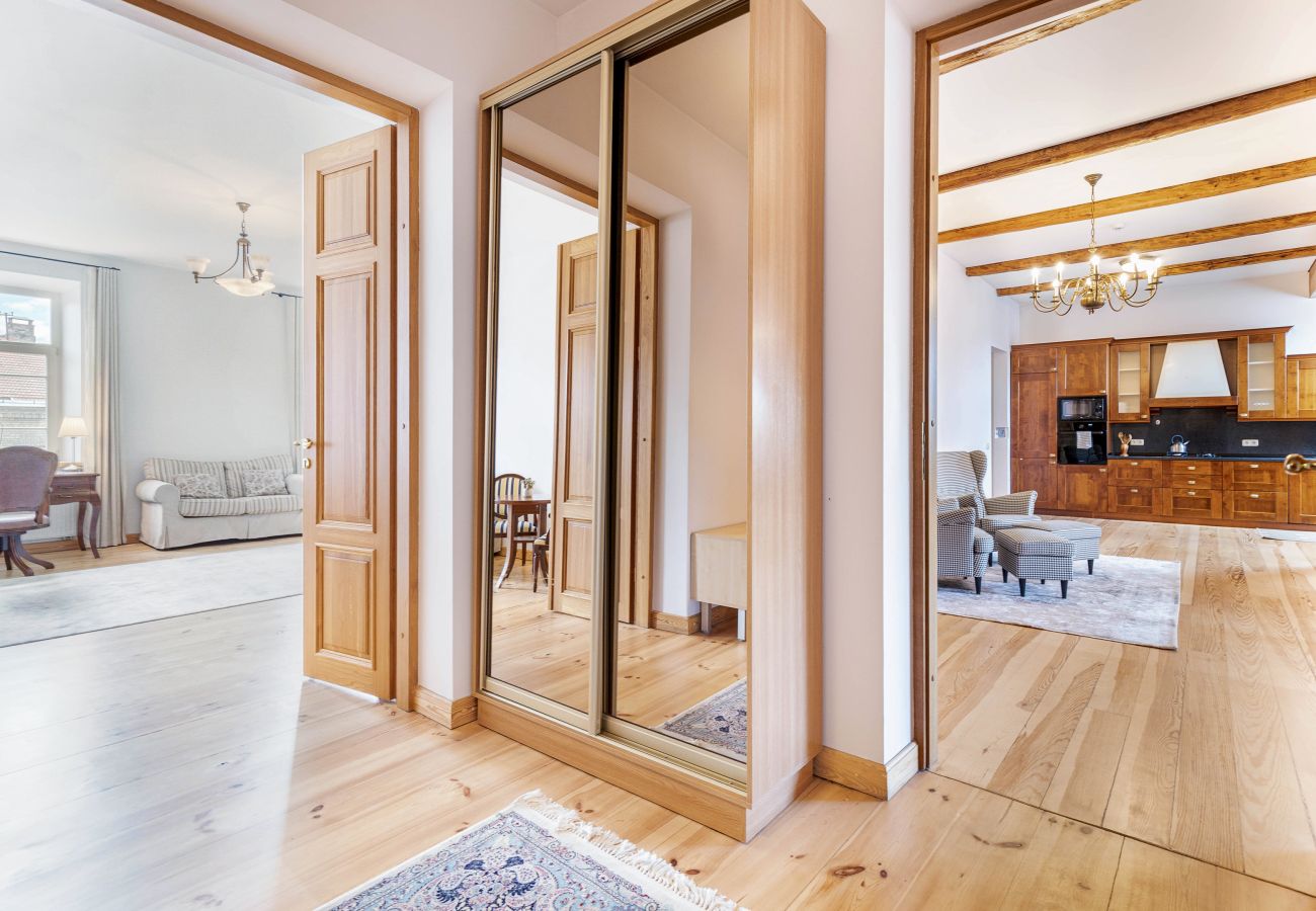 Apartament znajduje sie w miejscowości Vilnius ma 3 sypialnie i obłożenie dla 6 osób. O powierzchni mieszkalnade 205 m². Zakwaterowanie jest wyposażone w następujące rzeczy Pralka, Suszarka, żelazko, Internet (wifi), Suszarka do włosów, bojler gazowy, parking na otwartej przestrzeni w przy sąsiednim budynku, Telewizor.Kuchnia, jest wyposażone w chłodziarka, mikrofalówka, piekarnik, zamrażarka, zmywarka, naczynia/sztućce, przybory kuchenne i czajnik.